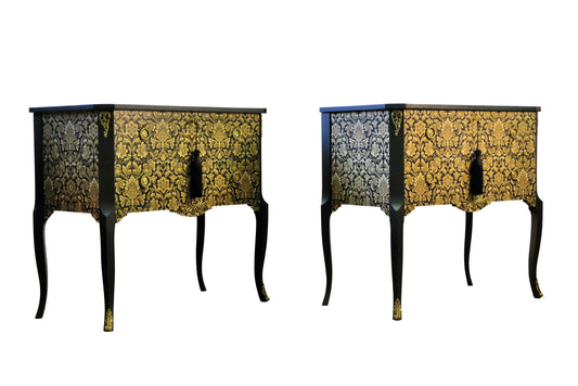 مرحاض على الطراز الجوستافي باللونين البرتقالي والأسود مع تفاصيل من النحاس (زوج)