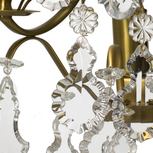 شمعدان حائط روكوكو من النحاس مع بلورات على شكل دلاية (عرض 32 سم/13 بوصة)