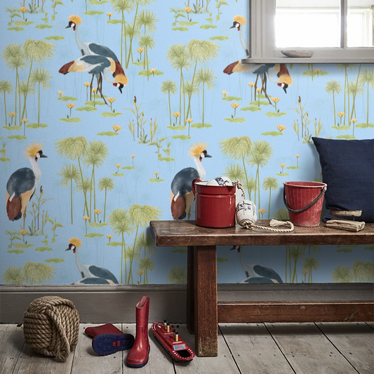 Cranes in Flight Wallpaper - Marine - HGAT111234 - Harlequin