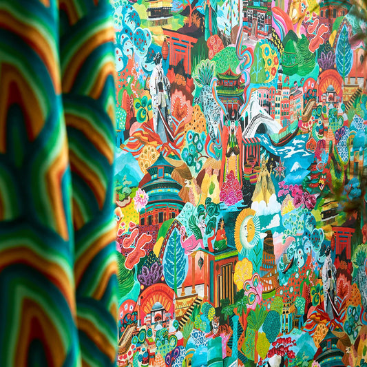 Journey of Discovery Wallpaper - Ionian/Harissa/Emerald - HQN3112919 - Harlequin