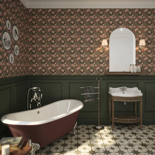 Ophelia Wallpaper - Moss & Blush Pink