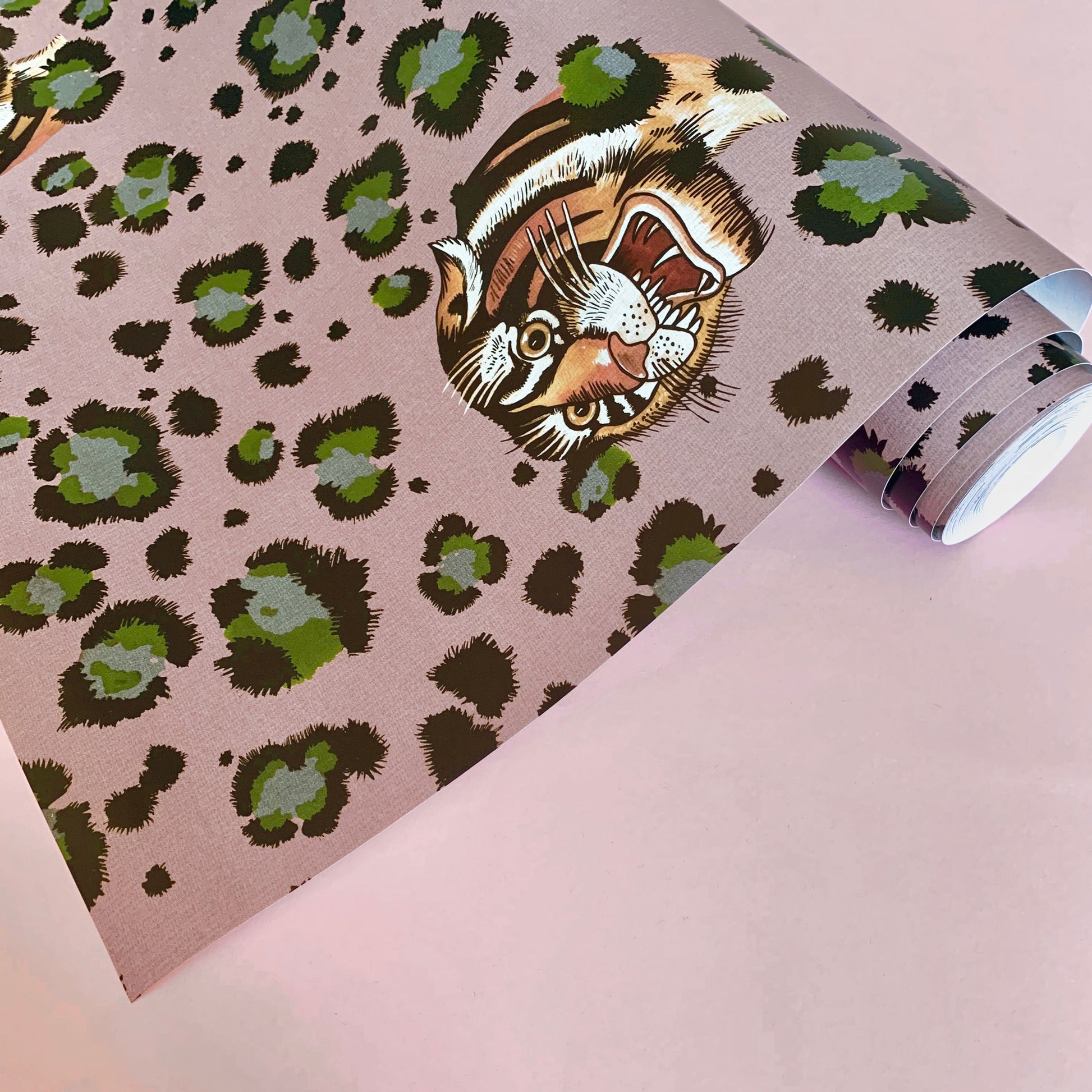Named after the ancient Egyptian city of Bubastis, which was sacred to the Egyptian Cat Goddess, Bastet. Our design Bubastis promotes two big cats, the prominent tiger's head and the renowned leopard's printed spots, both hand painted in gauche paint. Egyptians (and us!) believe cats are magical creatures, capable of bringing good luck to the people who house them. Adorn your walls in Bubastis and feel that feline power!