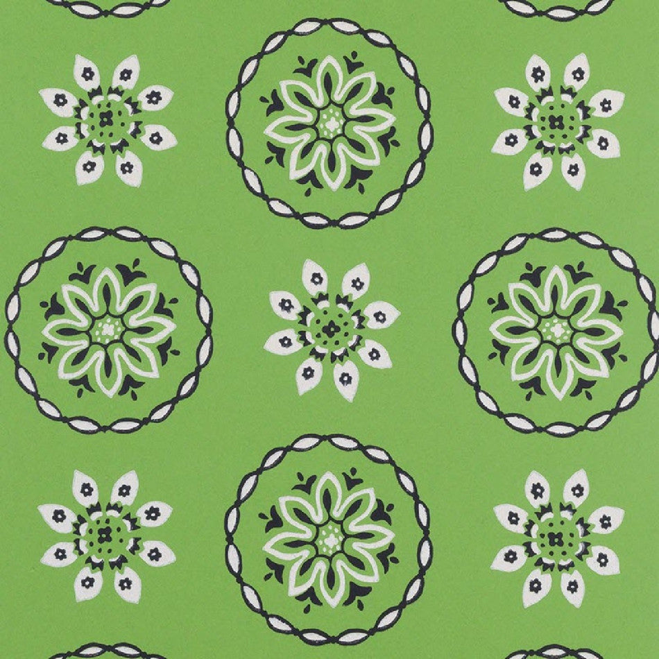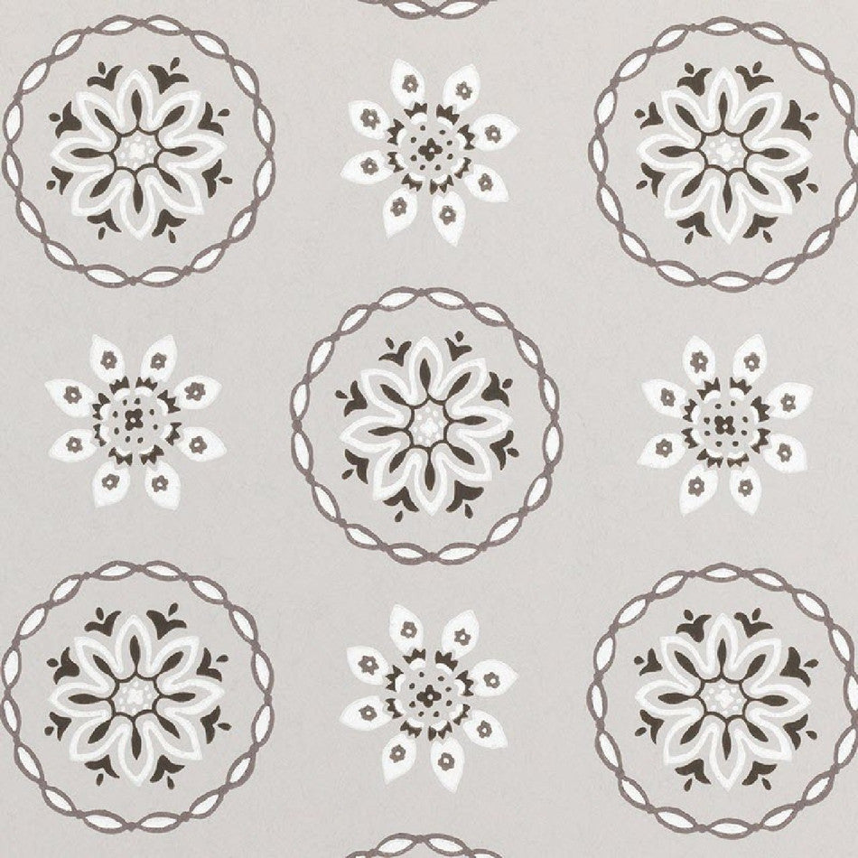 Star-shaped flowers set in roundels printed on a textured paper.