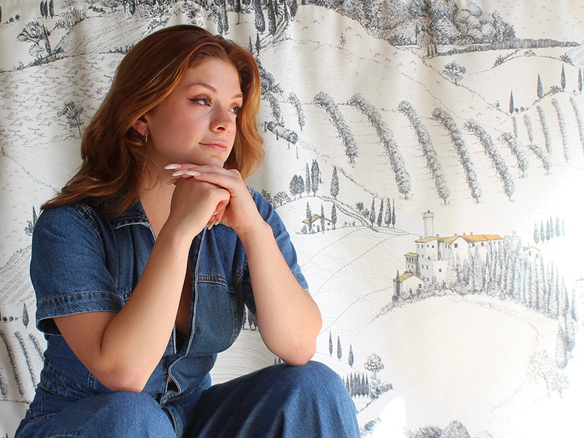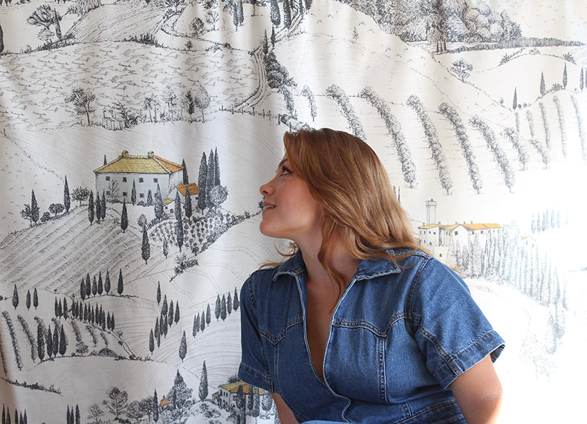 يصور قماش الستارة الجديد هذا التلال المتموجة والقرى الشهيرة الواقعة على قمم التلال في توسكانا. بين القرى القديمة وبساتين الزيتون وكروم العنب ومزارع الخزامى، تعج الحياة البرية والزهور البرية. نسختنا من قماش التوال، برسوم توضيحية سوداء بسيطة للمناظر الطبيعية مطبوعة على أرضية بيضاء عادية.