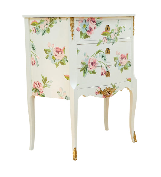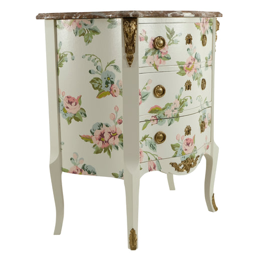 Louis XV Style Chest Three Drawer Chest with Floral Design and Wooden Top