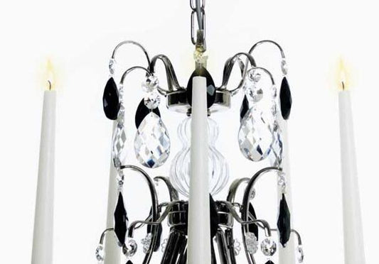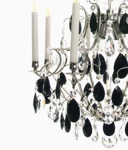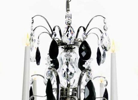 Nickel 8 arm Baroque style chandelier with almond black crystals