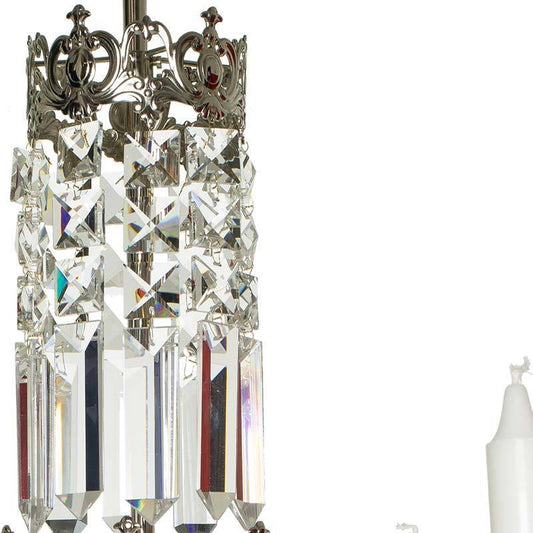 Nickel 5 arm Baroque style chandelier with coloured crystals