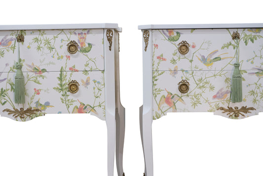 Pair of Louis XV Style Chest with Floral Design and Marble Top