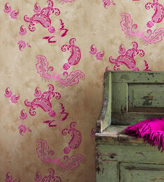 Paisley Wallpaper - Hot Pink on Tea Stain - BG0800-201 - Barneby Gates