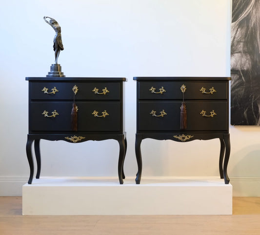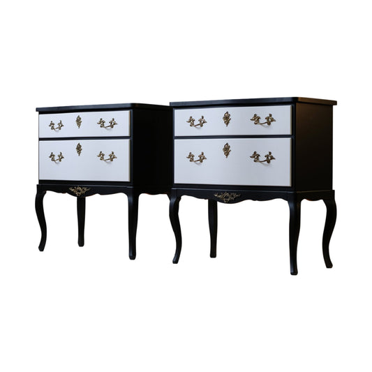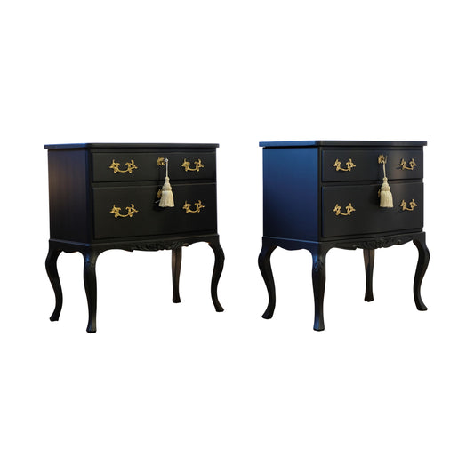Rococo Style Chest with 2 Drawers and Modern Flat Black Finish - Pair