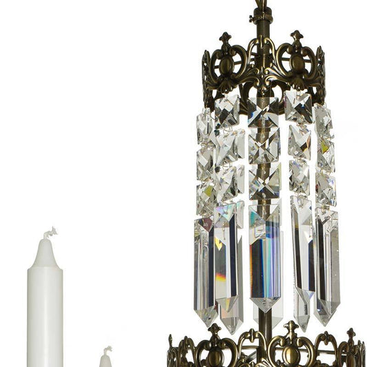 Dark brass 6 arm chandelier with full cut x prisms - 76cm height