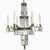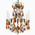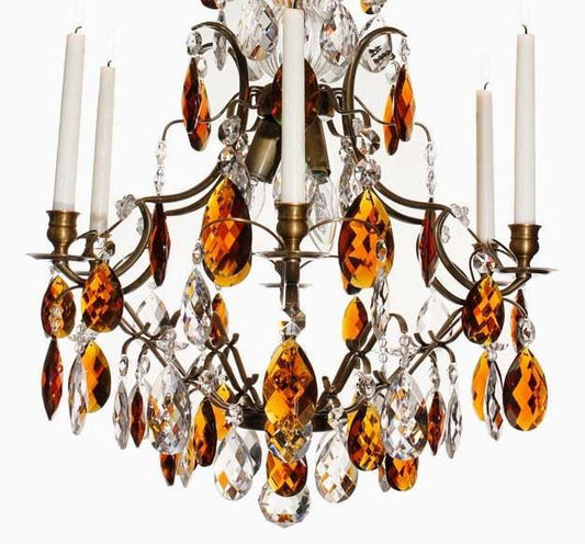 Dark Brass 6 arm Baroque style chandelier with coloured crystals