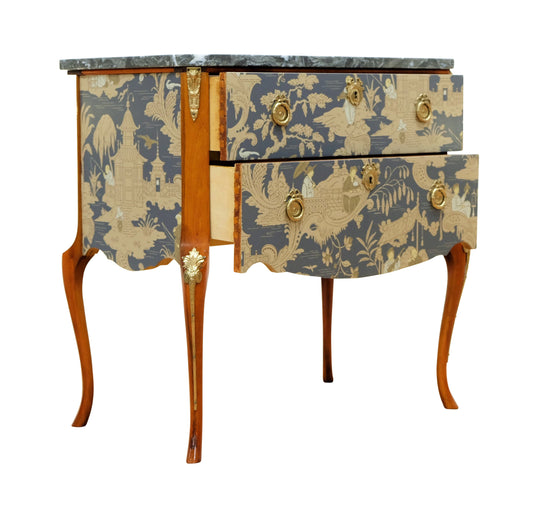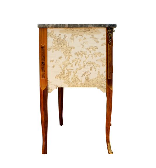 Gustavian Style Commode with natural marble top and Chinoiserie Design