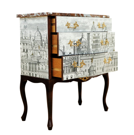 Gustavian Commode with Fornasetti Ancient Rome Design and Natural Marble Top
