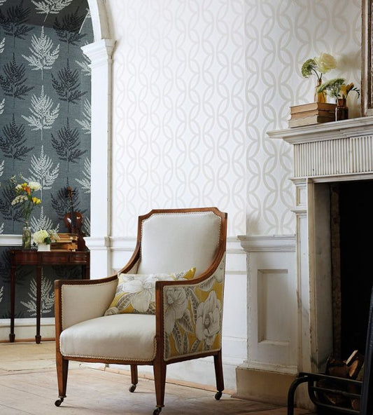 Caprice Wallpaper - Chalk Pearl & Silver - HPOW110594 - Harlequin