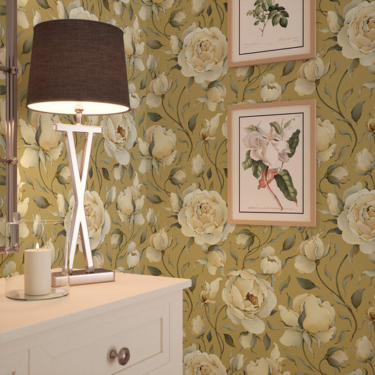 Enchanted Roses Wallpaper - Ivory on Antique Gold