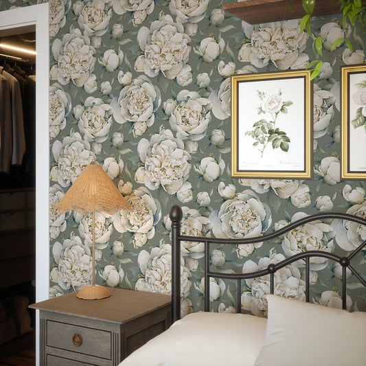 English Garden Peonies Wallpaper - Wild Nettle Green