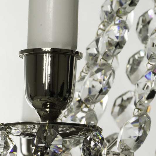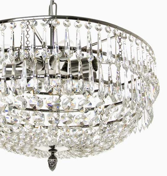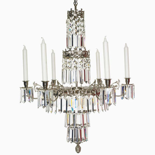 12 Empire Chandelier - 6 Arms - Drop Crystals - Nickel