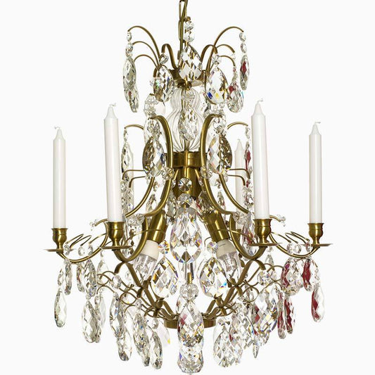18 Baroque Chandelier - 6 Arms - Drop Crystals - Brass