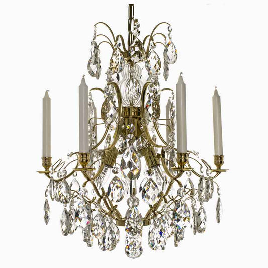 14 Empire Chandelier - 6 Arms - Basket Crystals - Polished Brass