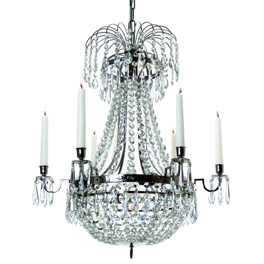 15 Empire Chandelier - 6 Arms - Basket Crystals - Nickel