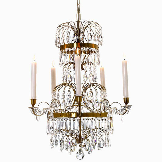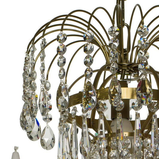 10 Empire Chandelier - 6 Arms - Drop Crystals - Brass