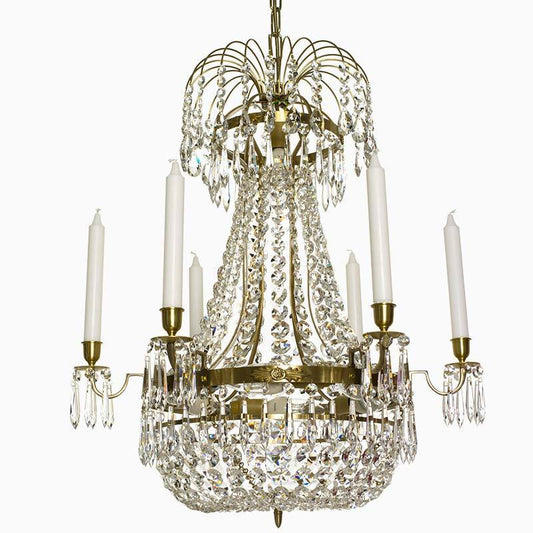 13 Empire Chandelier - 6 Arms - Basket Crystals - Brass
