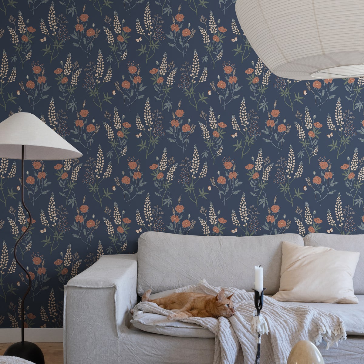 A blooming summer meadow with swaying lupines that mingle with sweet poppies and friendly straws.