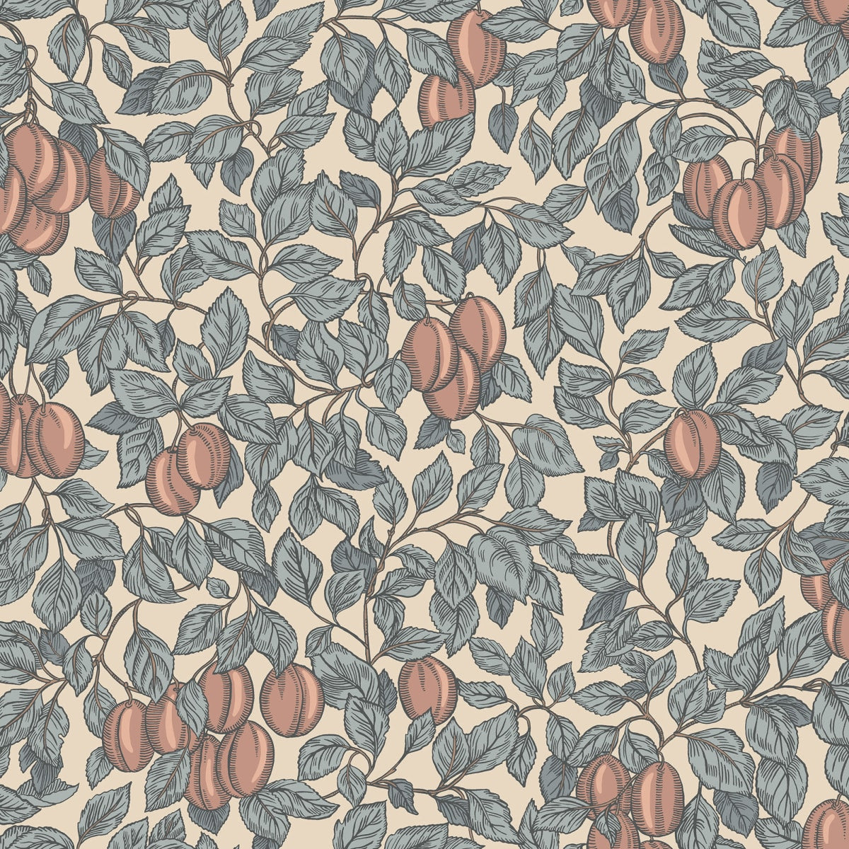 In the foliage of the plum tree the wind plays softly; a still breeze that caresses the room's pleasant graphic background.