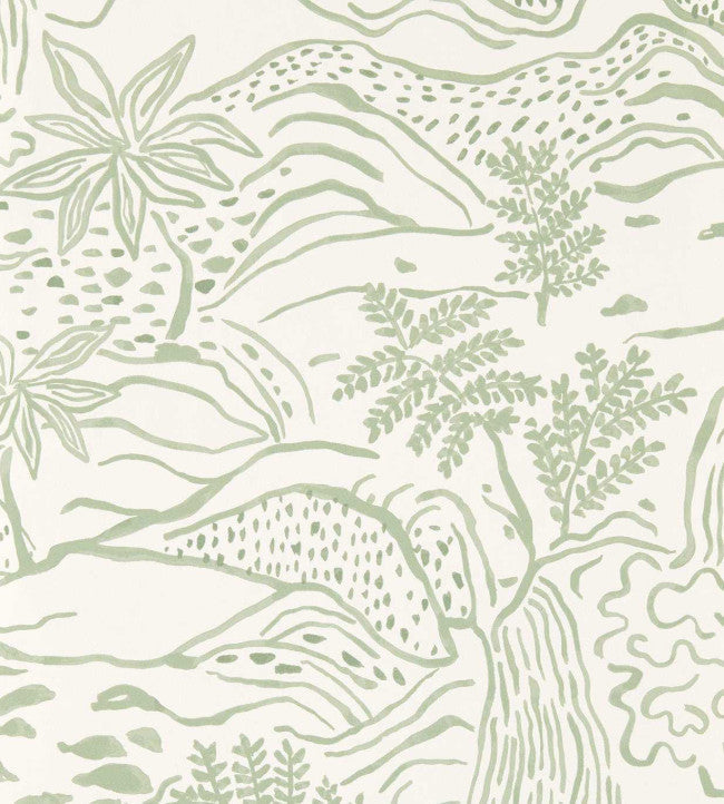 Taken from an original artwork designed for a jacquard weave and translated into a large-scale scene, Falling Foss has been repainted to give it a mural landscape feel. Telling a story of slow and easy walks through waterfalls and over gently undulating hills and riverbanks, the design offers something familiar for everyone to find. Trees, rocks, streams and brooks come together in harmony.
