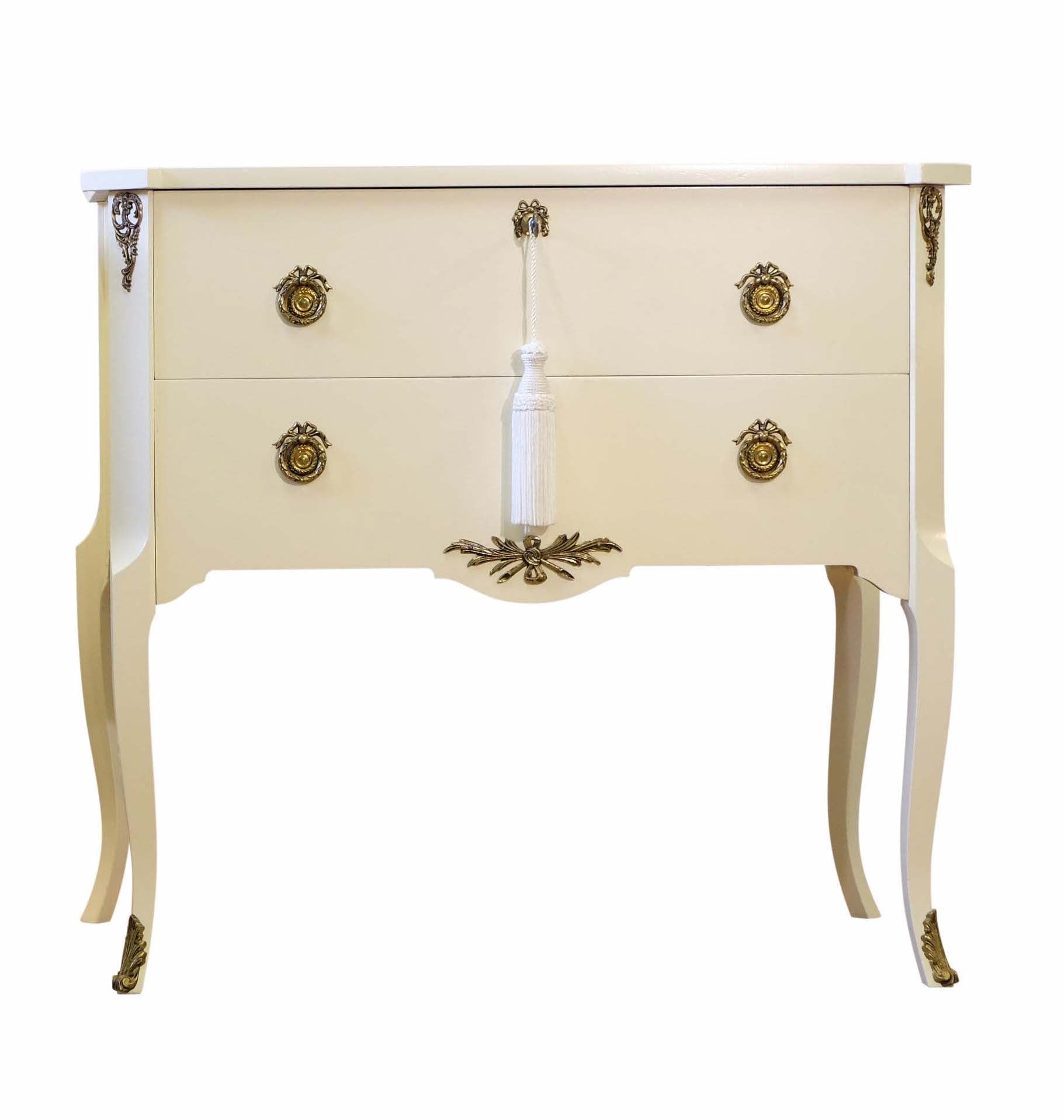 Gustavian Style Commode in Calming Cream with Brass Details (Single)