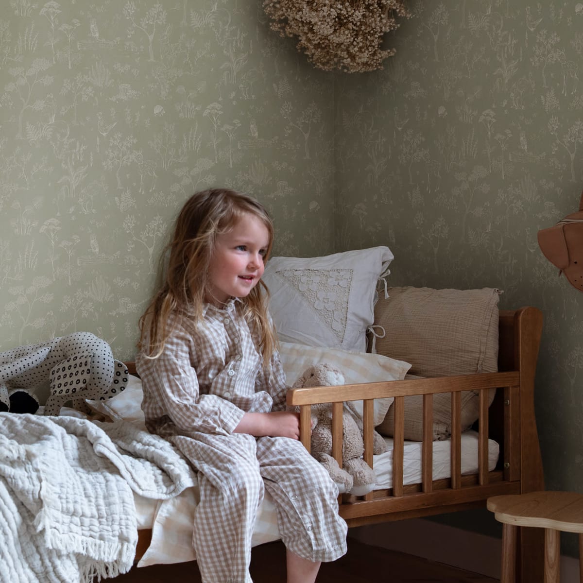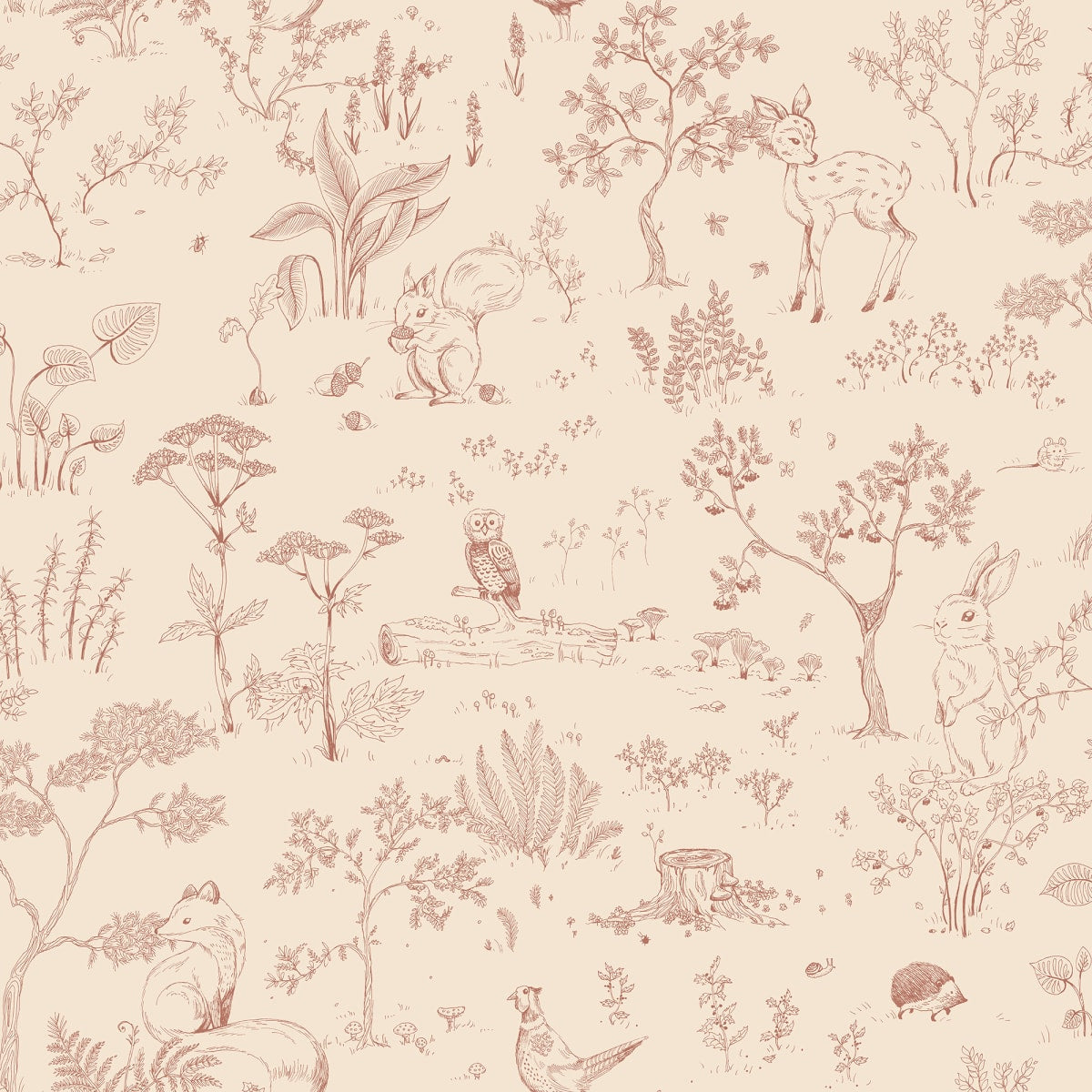 Hollie wallpaper invites you into a whimsical world, where charming forest creatures frolic amidst delicate botanical illustrations. This design brims with playful creativity and encourages imagination. Ideal for nurseries or any room in need of a touch of magic, the fine details and soft hues create a serene and inviting atmosphere.