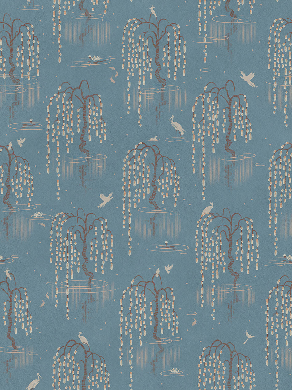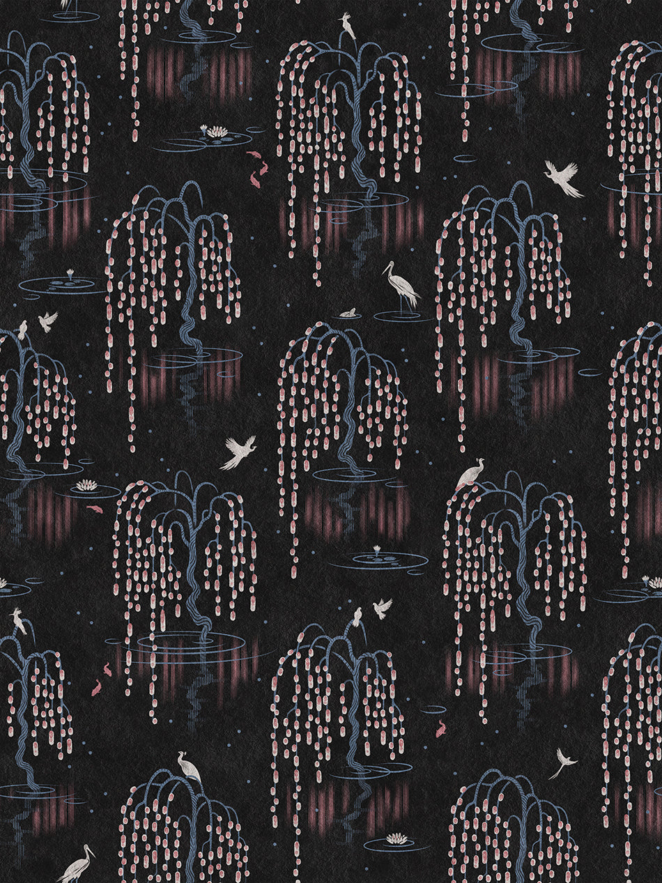 Inspired by the Japanese gardens of Holland Park and featuring delicate illustrations of cherry blossoms, lotus flowers, exotic birds and koi carp. Printed on luxuriously textured paper with a subtle and sophisticated sheen, create an oasis of calm that transports you to watercolour world.