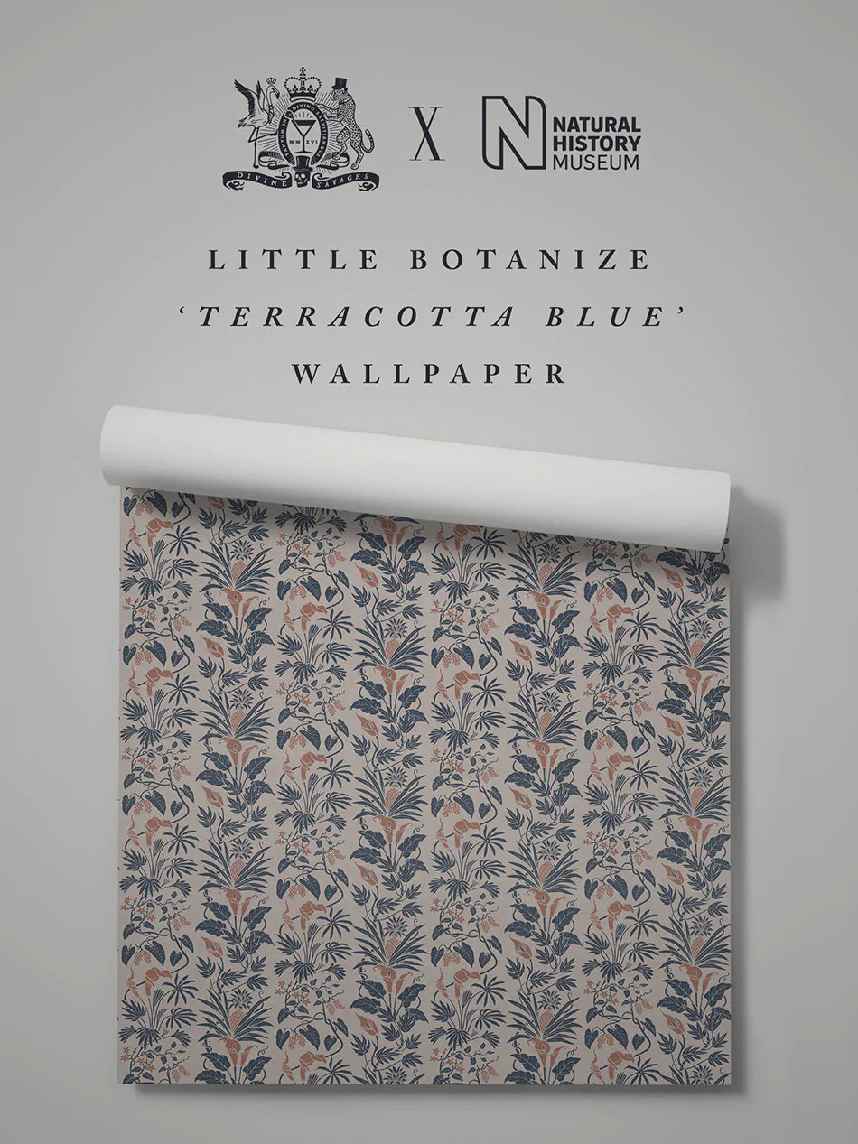 A beautiful botanic wallpaper with trailing foliage that brings nature into the heart of your home. Inspired by the iconic Hintze Hall at London’s Natural History Museum whose vaulted ceiling is adorned with illustrated panels showing plants from across the world. We’ve played with scale for our Little Botanize print with a dainty pattern that brings a delicate, timeless artistry to your walls.