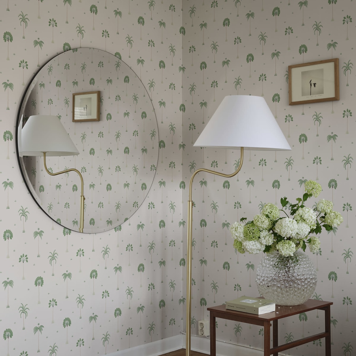 Like small ornaments, stylized palm trees proudly adorn this decorative wallpaper. A pattern with both a playful and exclusive feel.