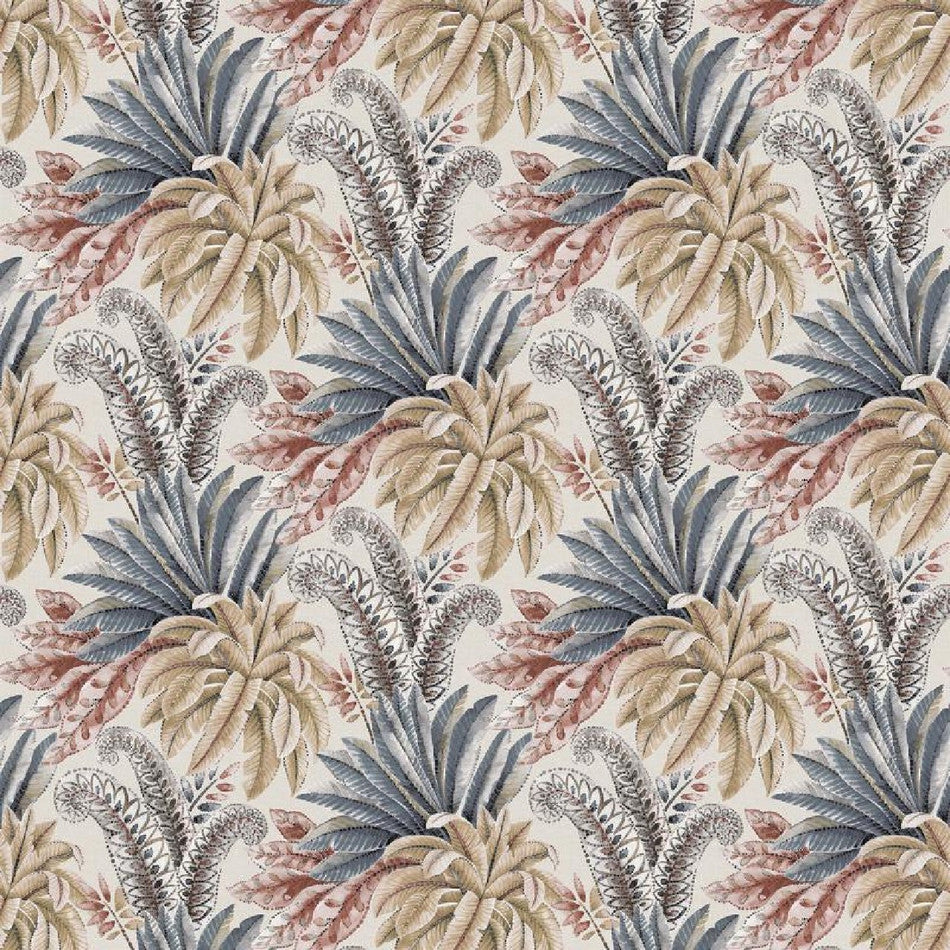 A flamboyant design featuring ferns and stylised paisley fronds is printed on an embossed linen ground. Named after a garden in New Zealand.