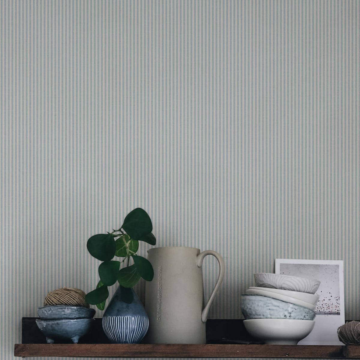 A small worked stripe with a woven textile appearance that creates a plain look from a distance and matches many of our best sellers.