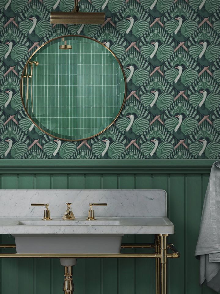 A stunningly flamboyant design that conjures the Golden Age of Hollywood and the iconic motion pictures of Fred Astaire and Ginger Rogers. Our glorious ostrich showgirls display their beautiful feathers as they dance across the stage in glorious Technicolour formation.