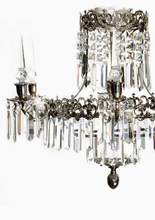 06 Никелевая люстра для ванной комнаты с миндальными кристаллами и обелисками