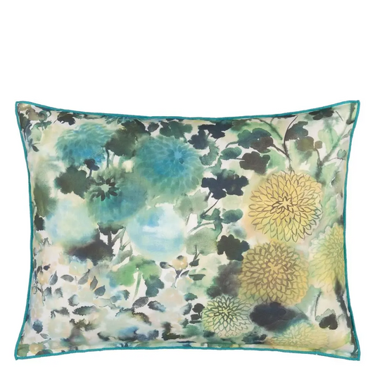 Подушка из хлопка с вышивкой в стиле икебана-дамаск