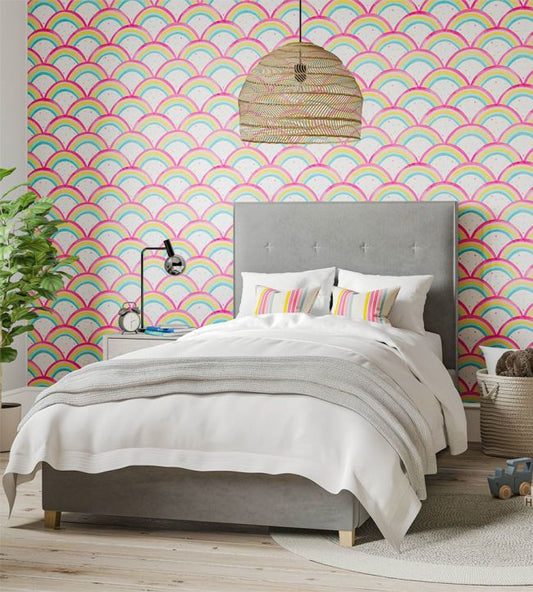 Rainbow Brights Wallpaper - Cherry/Blossom/Pineapple/Sky - HLTF112645 - Harlequin