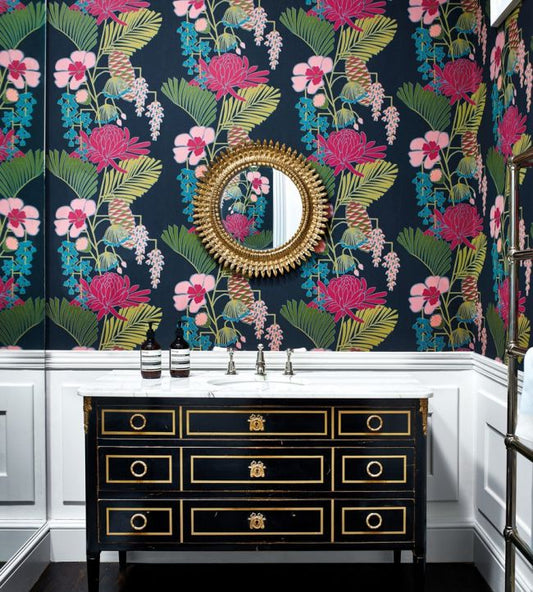 Salon Wallpaper - Ebony/Azalea/Fern - HSAW112153 - Harlequin