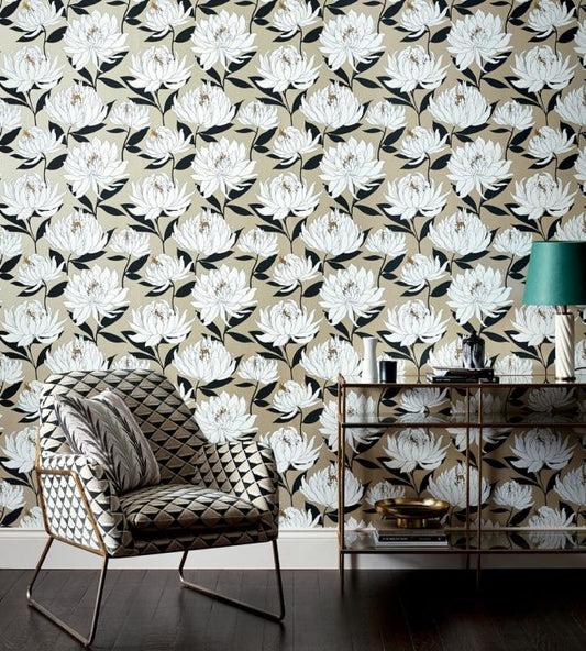 Selo Wallpaper - Ebony/Gold - HSAW112149 - Harlequin