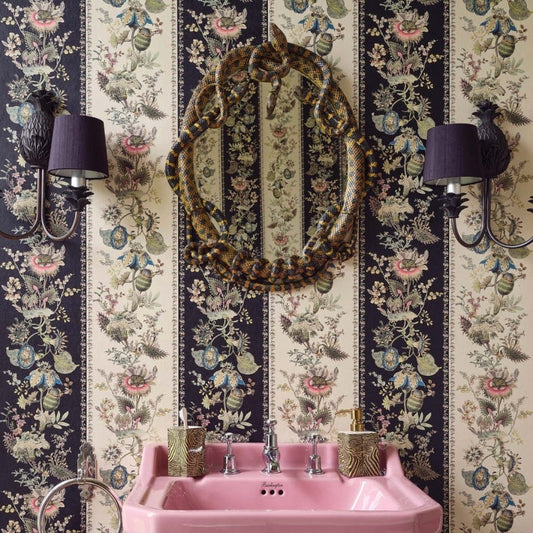 FLORA FANTASIA Stripe Wallpaper - Noir