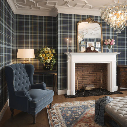 Heritage Tartan Wallpaper - Egyptian Blue & Mineral