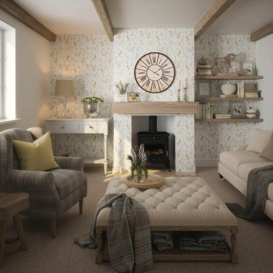 Countryside Trail Wallpaper - Ochre & Vintage Grey on Soft Cream