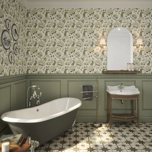 Beaumont Wallpaper - Olive & Sage Green on Ecru