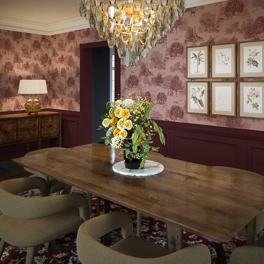 Tulip Garden Wallpaper - Gold on Bordeaux