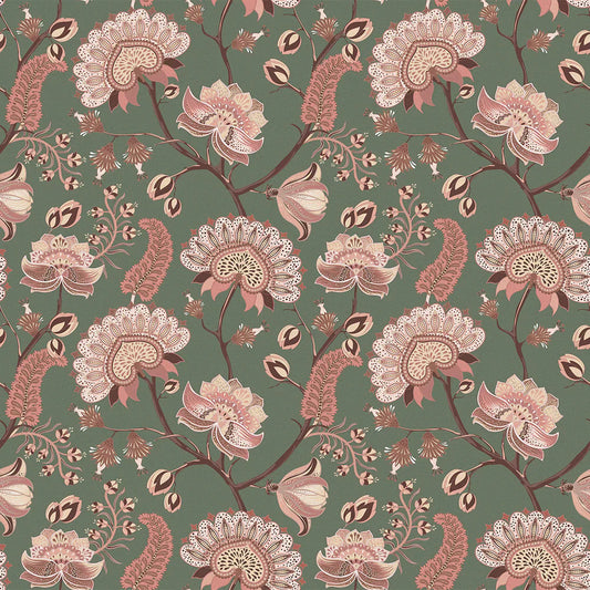 Ophelia Wallpaper - Moss & Blush Pink