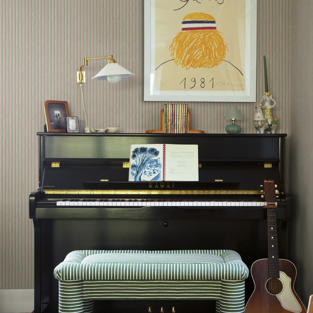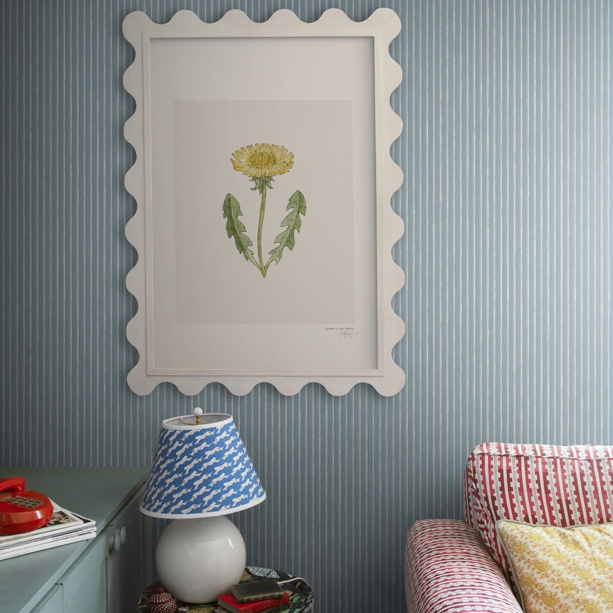 This design is part of the collection inspired by Carl and Karin Larsson, an iconic and beloved Swedish design family active in the 19th century. The design duo still inspires the whole world with their artistry, their home, and their way of living. The bright living room at Lilla Hyttnäs is in the late Gustavian style, with carpets in blue and white and woven covers for the couches.